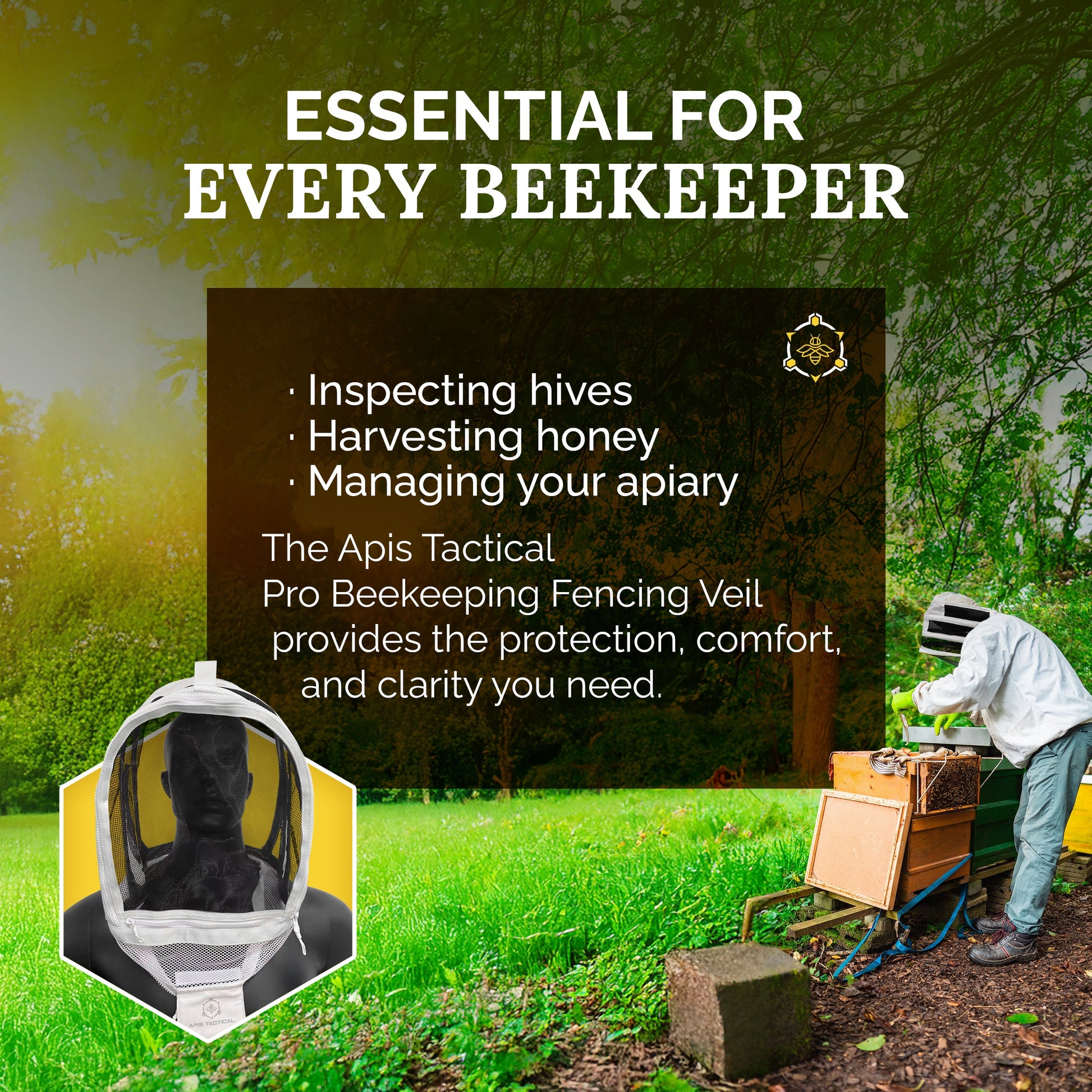 Enhance your beekeeping experience with the Apis Tactical PRO Beekeeping Fencing Veil, designed for both hobbyists and professional beekeepers seeking reliable protection and comfort.