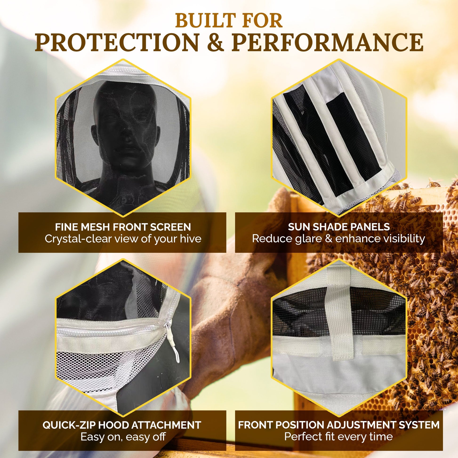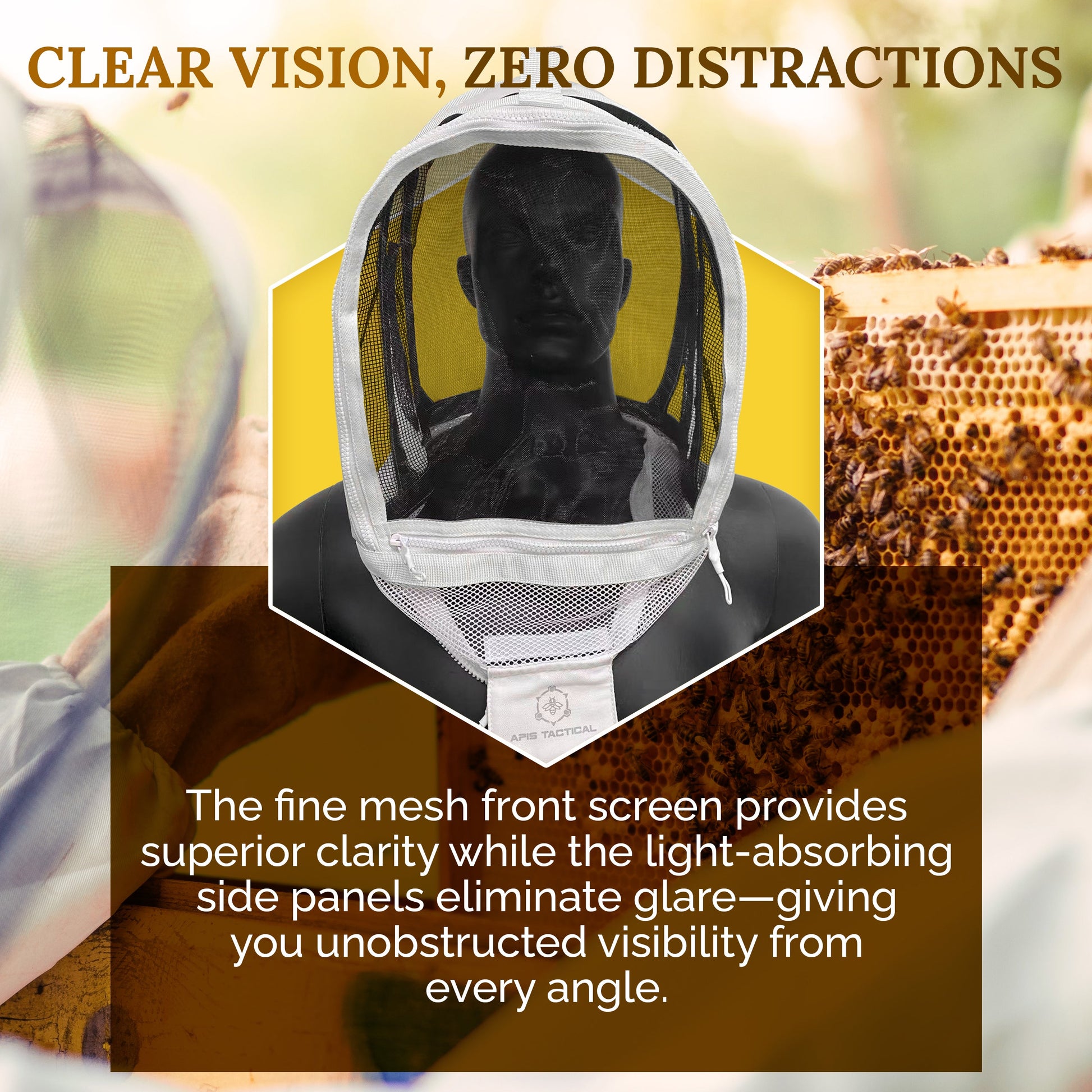 Crystal-Clear Vision: A fine mesh front screen provides sharp, unobstructed visibility, while light-absorbing interior side panels minimize glare, helping beekeepers see clearly in bright conditions without eye strain.